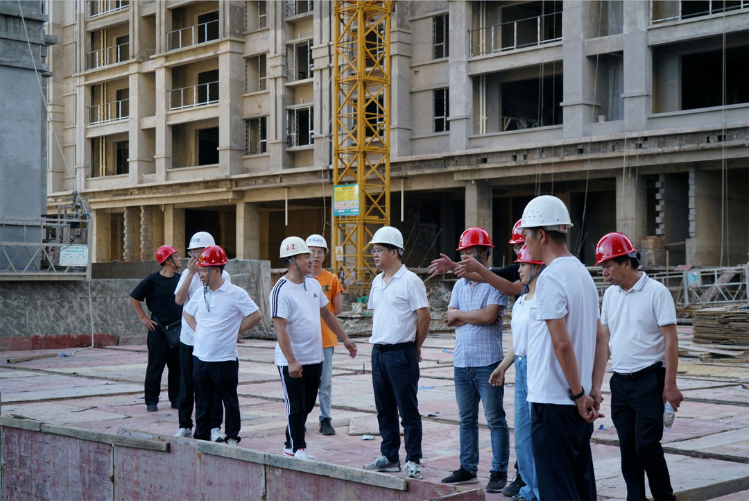 7月17日,在炎炎夏日之中,市信恒公司副总经理、茂行置地公司执行董事王文俊,茂行置地公司经理甘明翠一行前往茂行院子项目,组织监理单位、施工单位及各班组主要负责人召开工程进度推进会议,并到项目施工现场进行视察。